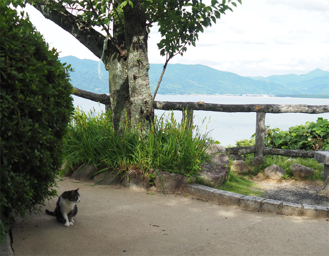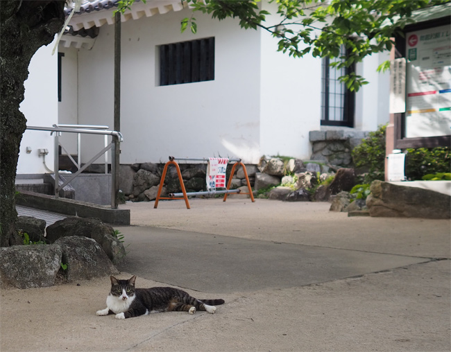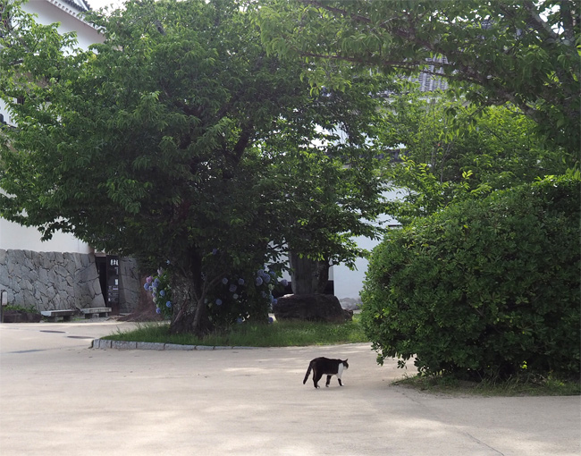 窓からはさきほどまでいたお城が見えます。猫さん達もゆっくりしていることでしょう。