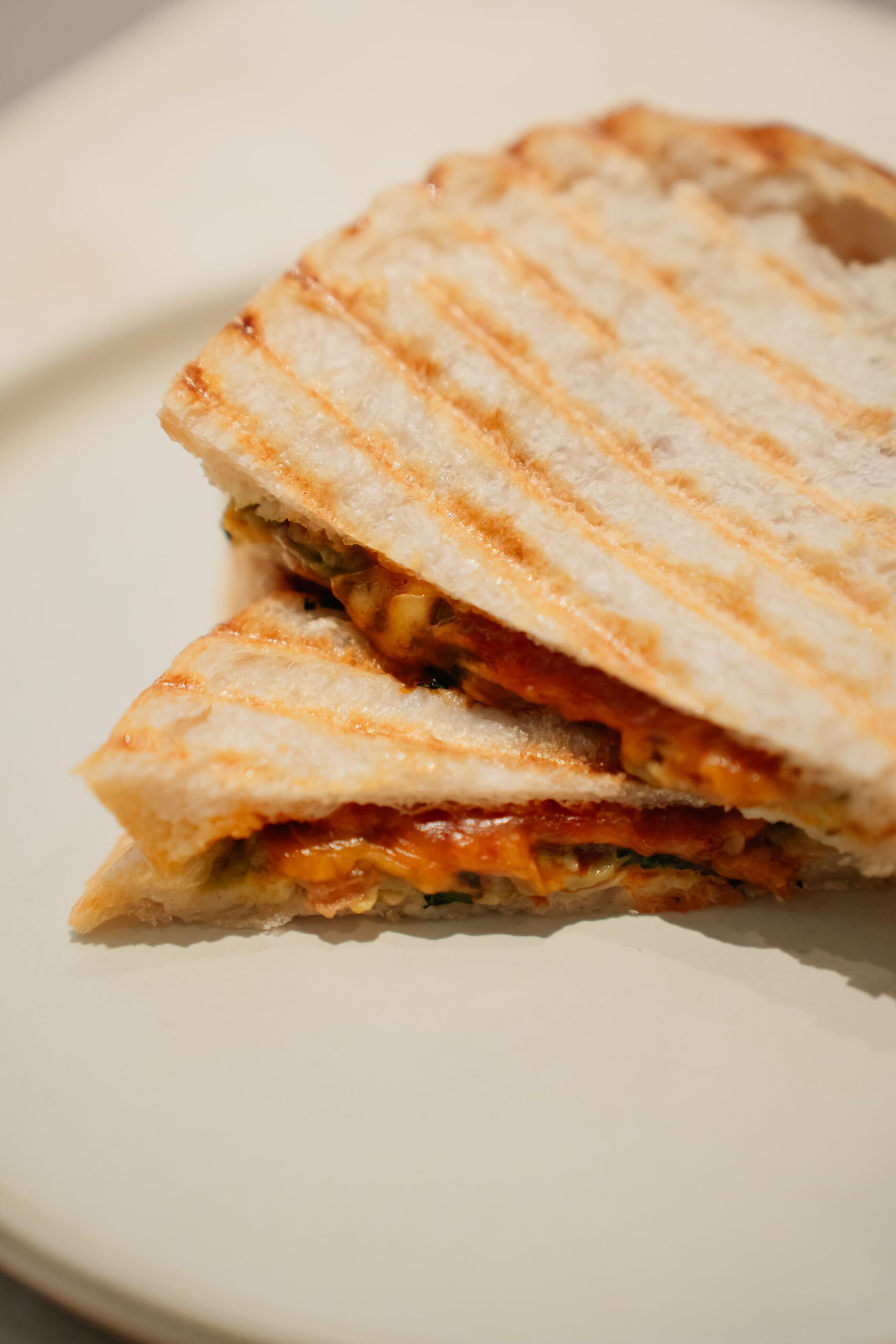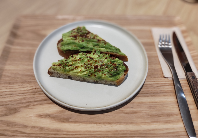 熟したアボカドにレモンの酸味とスパイシーなオリーブオイル、唐辛子を効かせたトースト。朝食からランチまで楽しめる一品です。
