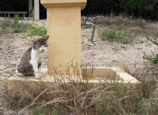 お水ではないとなるとご飯ですねきっと。5分ほど離れた港、猫さん集中エリアで配られていて余っていたカリカリを輸送してあげると完食でした。だいぶお腹がすいていたのですね・・。二回目の輸送をしようとしましたがもう無くなっていました。