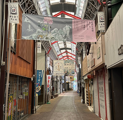 名鉄瀬戸線尾張瀬戸駅の北側と南側に大きくわかれる瀬戸市の」まちなか会場。南エリアを巡り、ランチを挟んで北エリアへ。北エリアにも、南エリアのせと末広商店街にイメージが近い銀座通り商店街がある。こちらも現役でありながら、懐かしい雰囲気が残されたレトロ感が味わえる商店街。瀬戸市出身の藤井聡太7冠推しが商店街全体で展開される。