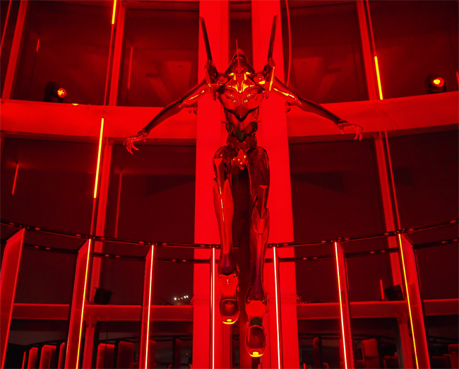 東京海上限定の演出で、初号機があってライトアップされていますが
