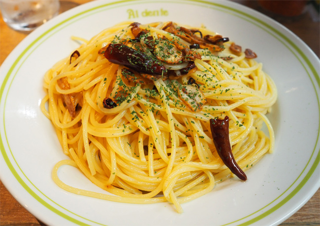 夜はいつものあるでん亭。前回はベーコンが多すぎたと感じたので普通のペペロンチーノにしてみましたが、やっぱりあった方が好みではあります。次回はトッピングで1枚だけ追加してみるのもいいかもですね。