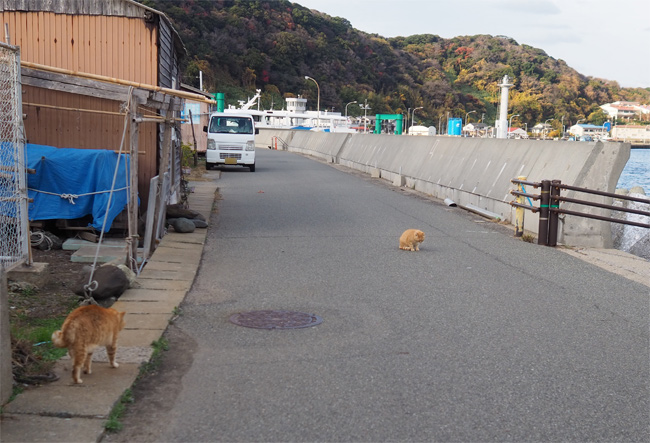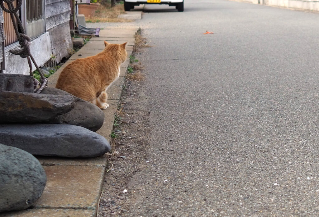 ボス風の茶トラさんが道を占領します。