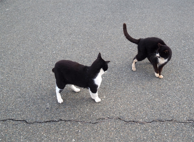 茶トラさんの争いを近くで見ていた白黒さん・・