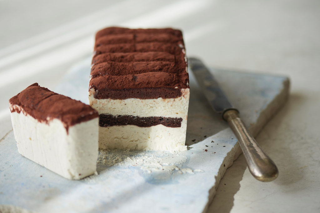 お酒も小麦粉も使用していない、儚い口溶けのティラミス。溶けやすいため冷凍のままカットしていただくのがおすすめ。甘さよりもカカオの味わいやコーヒーの香ばしさが引き立ち、温度によって味わいや香りの変化が楽しめます。