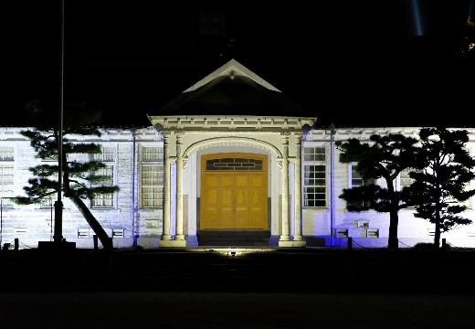 上野高校明治校舎(旧三重県第三尋常中学校校舎)は、明治33(1900)年に建設された美しい白亜の校舎で、現在も生徒の部活動などで使用されているそう。明治期の旧制中学校建築として現存する数少ない建物の一つで、三重県の有形文化財に指定されています。コロナ禍による中止と2022年12月まで行われた耐震改修工事を経て、今回4年ぶりにライトアップが復活。