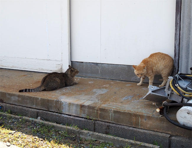 キジトラさんがうなり声をあげると茶トラさんが動き出します。
