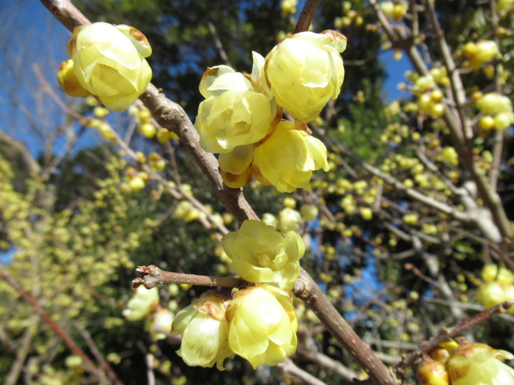 屋外植物園「ゆりの園」付近に多数植栽されたソシンロウバイは正月ごろから開花。名前の由来でもある蝋細工のような透明感のある花とそこから放たれる甘く爽やかな香りは、冬の澄んだ空気の中で新年の清々しさをいっそう引き立ててくれるでしょう。