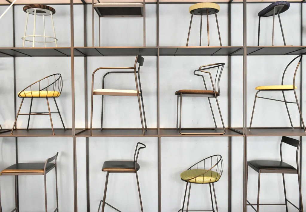 鉄家具でコーディネートされた部屋がシーン別に展示されており、実際に座ったり、触れたりしながらお気に入りの家具を選べます。20種類以上もの鉄の椅子やカウンターチェアは、座り比べる楽しみ方も♪また、店舗には工場が併設されているので、稼働日には職人さんが家具を作っている様子を見学することもできます。