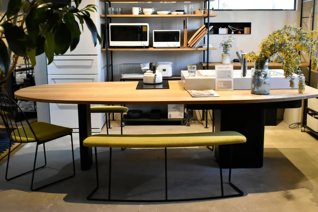 ダイニングテーブルとのコーディネートも試せるので、テーブルの大きさや椅子の種類に悩んだときは、組み合わせを見ながら選ぶことができます。