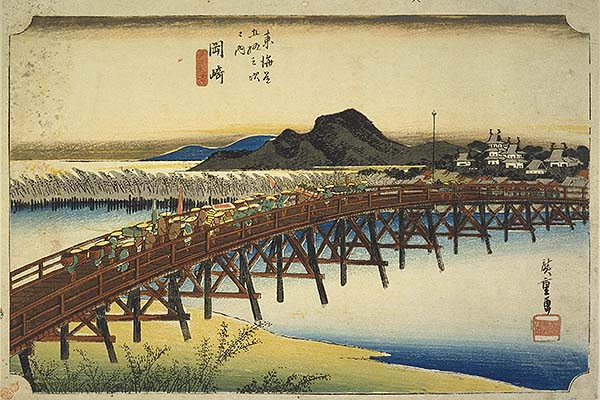 広重『東海道五拾三次 岡崎・矢矧之橋』,保永堂.