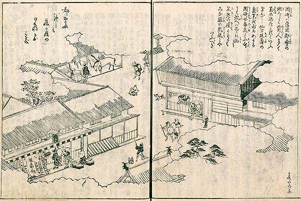 18世紀末の『東海道名所図会』には、曲がりくねった街並みが描かれ、「城下の町員(数)は百六十餘町廾七曲(にじゅうななまがり)といふ当国都会の地にして商人多く繁昌の所也」 という案内文が記されています。