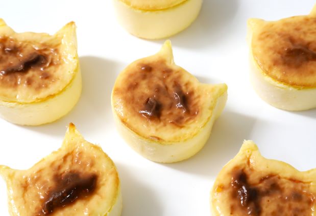 高温焼成で焼き色を付け、バスク風に仕上げた小さなチーズケーキ「にゃんチー」。外はこんがり、中はとろりとした口当たり。甘過ぎずさっぱりした口当たりと、軽やかな食感が特徴です。ねこ形でころんとかわいらしいミニサイズの「にゃんチー」は、カフェタイムを盛り上げてくれるでしょう。