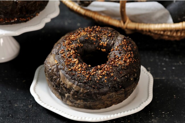 外側はサクサク、中はしっとりとした「ぜっぴん!!クロワッサン」。累計販売数600万個(※)を突破したクロワッサンで、今回の販売では「ぜっぴん!!クロワッサン~ブラック~」としてブラックな姿になって登場します。フランス産の発酵バターとブラックココアを練り込んだ生地で焼き上げており、バターの香りと味わい、そしてブラックココアのビターな風味が堪能できます。仕上げに塗った蜜のほのかな甘さが良いアクセントに!