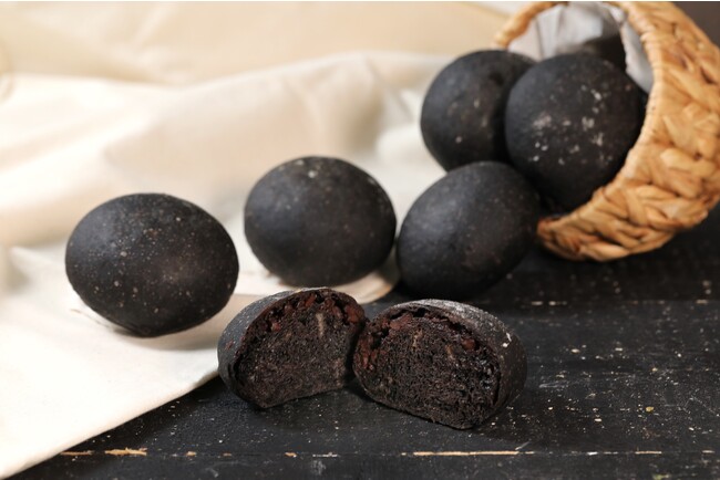 フランスパンの生地にブラックココアを練り込んで、チョコチップを包んだまん丸型のフランスパン「ブラックチョコフランス」。真っ黒なのは外側だけではなく、なんと中身まで!どこを切っても真っ黒なフランスパンは、ビターな風味とほどよい甘さのチョコチップが相性抜群です。